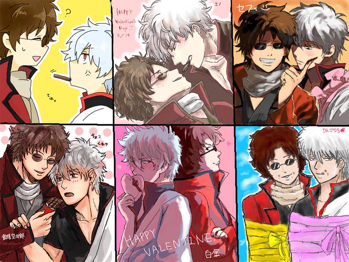 坂銀バレンタイン絵チャログ お題は 一枚目:チョコレート 二枚目:3Z 三枚目:腕枕 でした! もじゃもじゃバレンタイン(*●∀●ΘωΘ*) ありがとうございました〜!/////