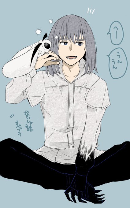 マーリンの食レポアクション風オベブラ本イメージ図。マーリンの服めんどかったからパーカー着せてしまった。(フードに穴空いてるのはわざと) https://t.co/qtITLa21X7