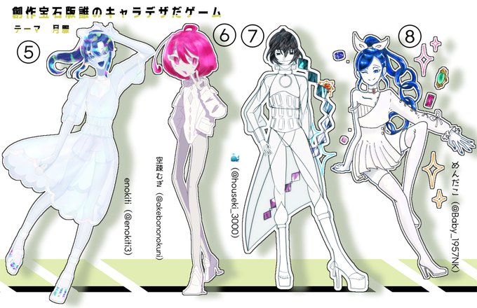 #創作宝石版誰のキャラデザだゲーム 空疎むぎ氏主催の企画に参加させていただきました!! ⑤の子作画しました🕺 えのきがデザインしたのはどの子でしょうか!!リプにアンケートあるので良ければ投票お願いします☺️
