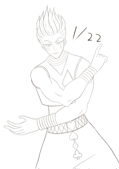 #イラスト練習中 【1月22日】 ハンターハンターのヒソカの模写です。 今日で絵を描き始め5ヶ月ぐらい経ちました‼️ 今回は、画像の解像度を良くしてみました。 次の課題は ・魅力的な線画を描く ・レイヤー遊びをする これを頑張っていきます❗️