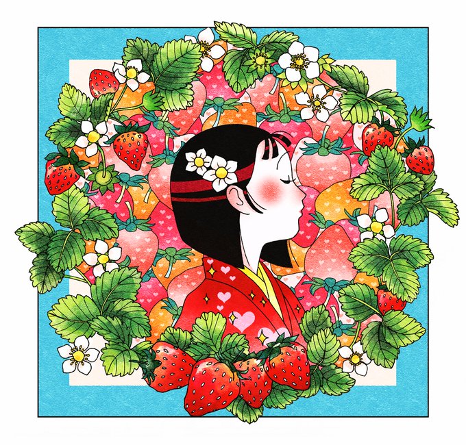 塗れたー!後ろのイチゴの種はハート模様…! @koume_lotte #ロッテ小梅 #小梅塗り絵
