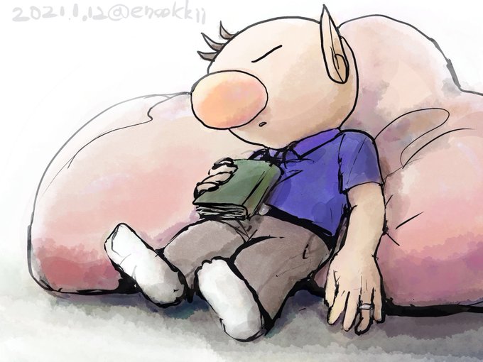 休みの日に人をダメにしそうなクッション的なもので寝落ちてるかんじの絵