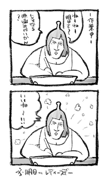 今年のじゃないけど、コミティアで本が出なかったときにペーパーに描いた妄想出張編集部好きだな #出張編集部 #コミティア