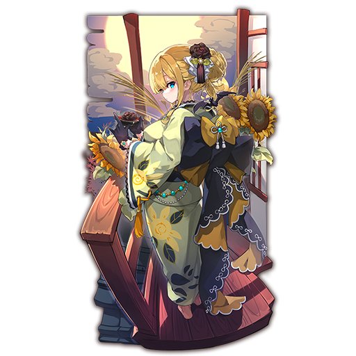 浴衣アーベントさんが持ってる盃がひまわりなんだよ