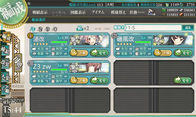 鬼怒!! うちのレベル76だと慢心かなあ。 #艦これ
