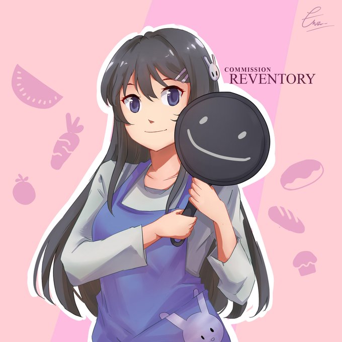 Sakurajima Mai apron holding pan xd, commissioned by @Reventory <3
