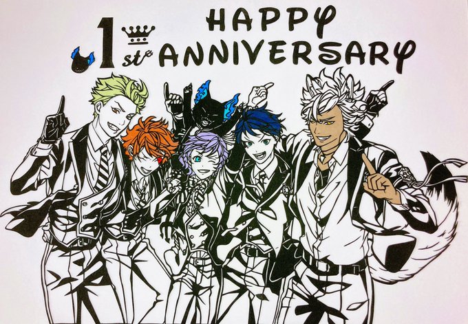 今更だけど ✨Happy Anniversary✨ ※切り絵です ※元絵はグリムGroovy絵です 1年生組&グリムの笑顔を見て絶対に切りたい!と思い、拙いながら愛はいっぱい込めて切りました✂︎ 何気に1stの部分可愛くてお気に入り🥰