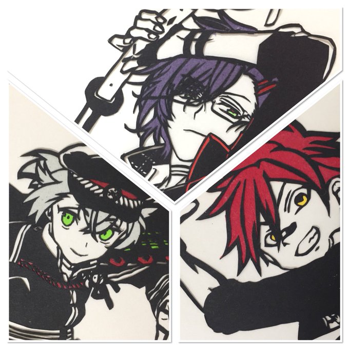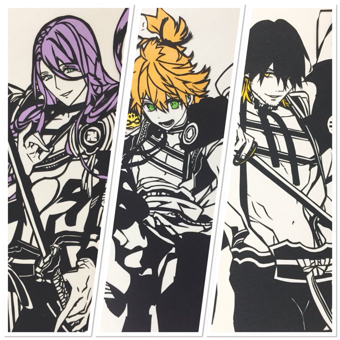三名槍揃ったのに並べるの忘れてた😱 あと、切り絵最初の方で源氏兄弟フライングで切ってたんやけど並べてなかったから並べました!!