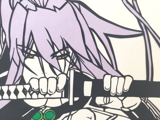千子さん出来ましたー★ 切り絵です。 元絵は公式描き下ろしイラストです。 画像が暗かったので、想像で切ったところもある🙄 次は小烏丸さんやります:.* ♡(°´˘`°)/ ♡ *.: