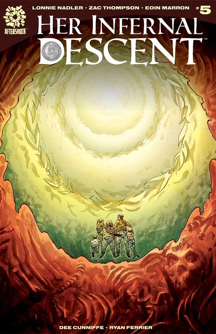 Out today! The fifth and final issue of @ZacBeThompson and @Lon_Monster's HER INFERNAL DESCENT, with yours truly on art and @deezoid and @MarshallDillon on colours and letters!
