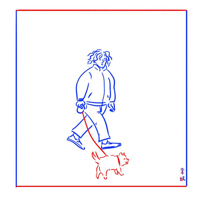 2018년에 그린 산책하는 강아지 그림