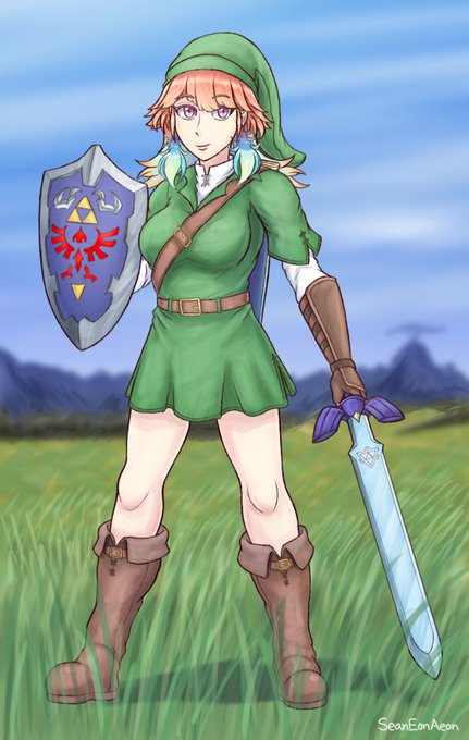 Now that she's finally playing a Zelda game on stream, I decided to draw Kiara dressed up in Link's tunic, with an orange version as well.