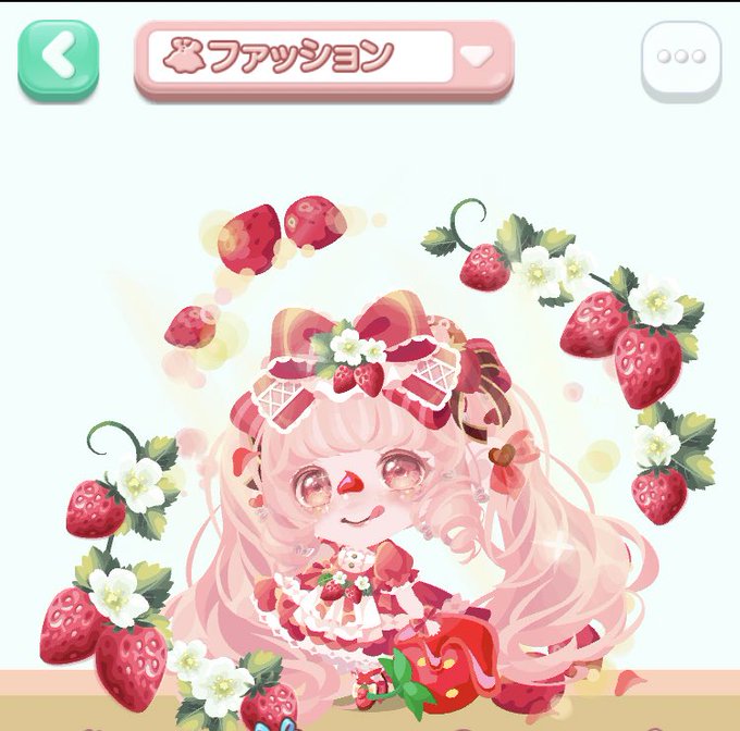 ポケコロ始めたばかりの頃(左)は、大好きないちご🍓コーデがしたくて、苦労してたなあ😭