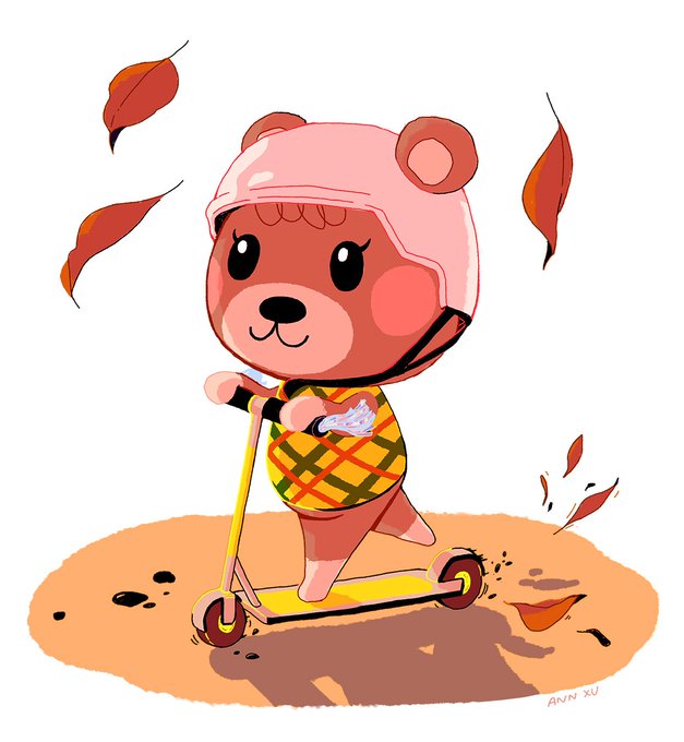 Maple taking her new ride around town 🐻🍂🛴 (from @JimmyWhetzel's Happy Home Designer stream)