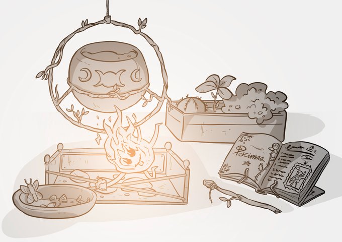 Diseño de props de bruja, mis favoritos son los calderos ejeje