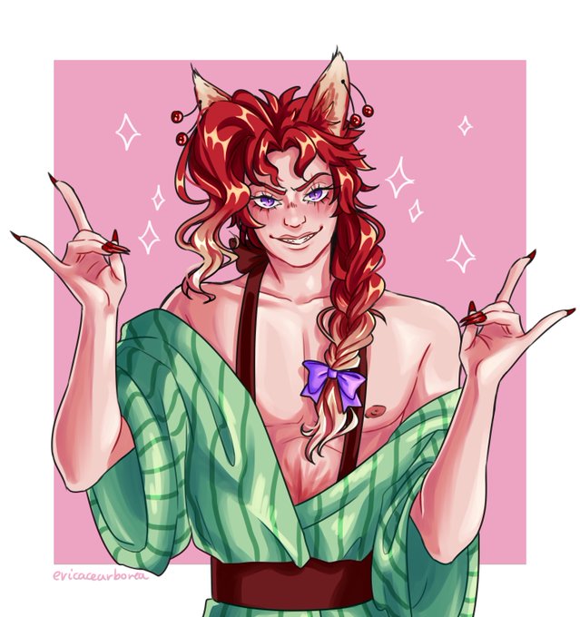 happy birthday @san_doria!! she's one of my best friends, she's so nice and sweet and supportive and I just love her so much🥺💕 here's a kitsune kakyoin for you! I hope you like it💖