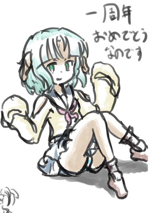 1周年と収益化おめでとう!!(大遅刻)(安定しない絵柄)(ジャーキーはサーモンの干した奴が好き) #コロアート