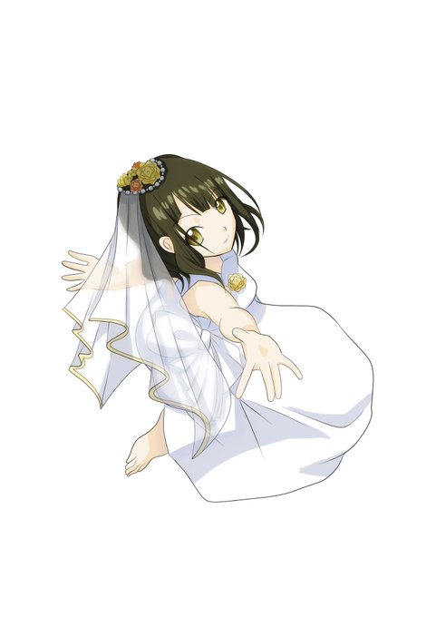 ハロウィンはしずくの「あんでっど・なーす」で歌野が着ていたものを、ウェディングドレスは水都の「ブライダルチャレンジ」で後ろ姿のみの歌野から、クリスマスは球子の「聖なる夜のショータイム」を着せてます