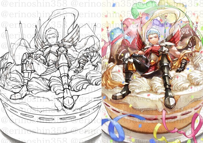 ケーキが大きいのかノエルが小さくなったのか謎の絵ですがキニシナイ🥳