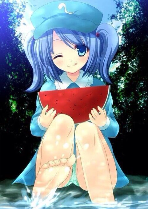 にとり「秋姉妹が作ってくれたスイカ美味しいよね〜」 雛「そうね。とっても甘くて美味しいわ」