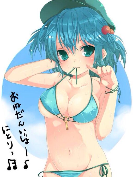 にとり「おはよう盟友♪…え?なんで水着かだって?…こっちの方が目が覚める かなと思ってね」 盟友=椛でふw #にとり好きならRT #東方好きならRT