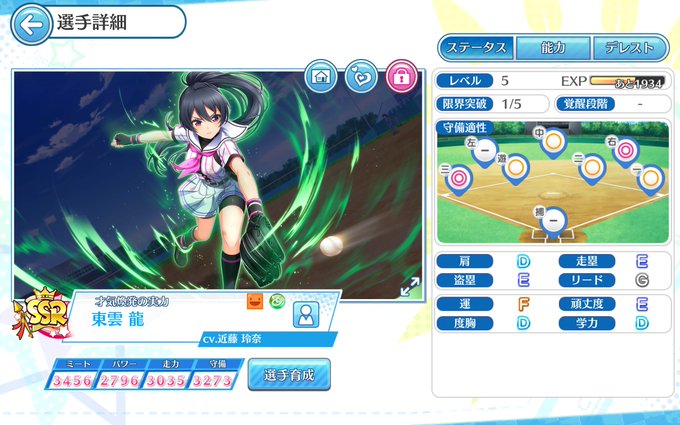 可愛い🥰🥰 流石に鉄壁イベント以外で 翼の打力を落としてまで 翼に守備の極致を付ける事は無いだろうから 現時点では1凸で良いかな~🤔