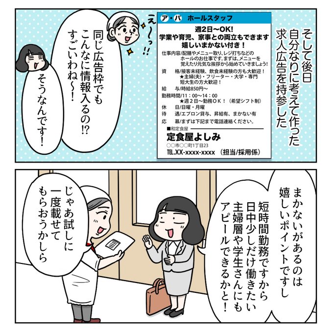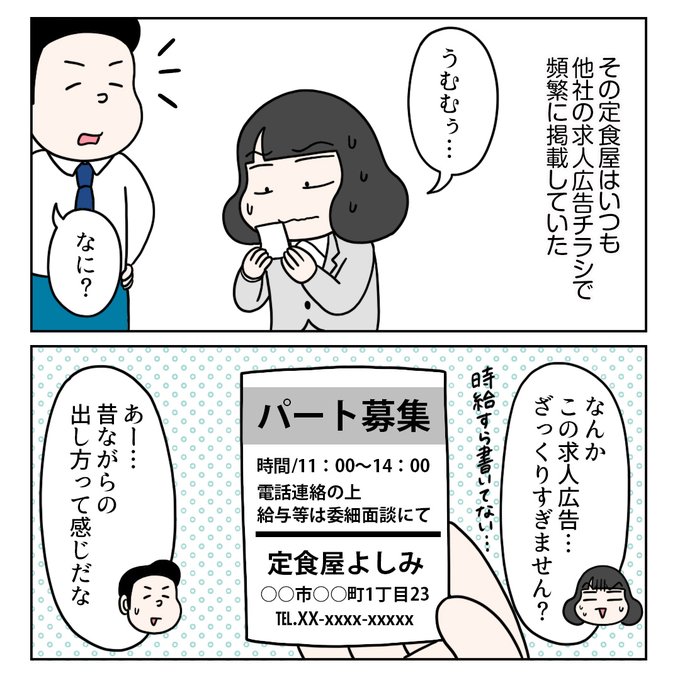 『定食屋オーナー・よしみさんとの思い出③』1/2 #コミックエッセイ #求人広告