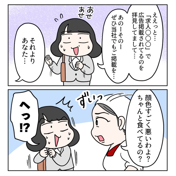 『定食屋オーナー・よしみさんとの思い出①』1/2 #コミックエッセイ #求人広告 営業1年目の頃に出会ったお客様とのエピソードです。 少し長編になりそうですが、ぜひお付き合いください😊