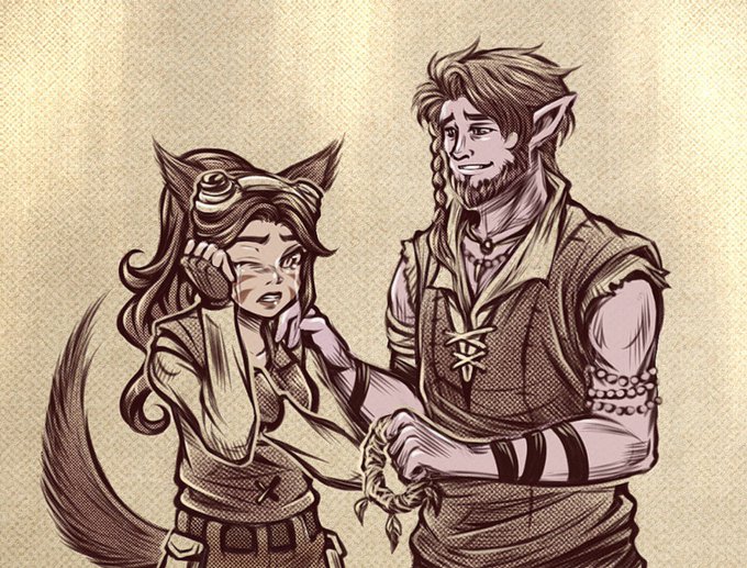 A sepia art #commission for @madjr297 with their OCs Taya and Cedric. Thank you so much!