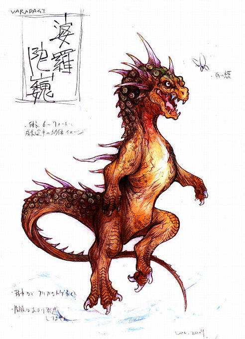 北上川上流のごく狭い村落で信仰されていた龍神。 その姿は太古の爬虫類バラノポーダに酷似している。