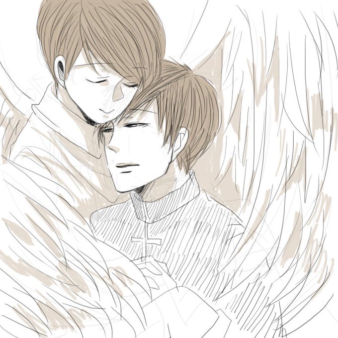 素晴らしい絵師様方の影響を受け、天使と悪魔と神父のパロ。一おそ+カラ十からの、一十四+カラおそ。描いてないけど、チョロ松は神様、トド松は悪魔。