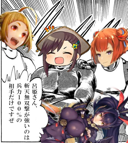 そういえば新しい呂姫にあまり苦手意識ないなと思って動画を見返したら、ほとんどの場面で勝ってた 兵力200%あれば呂姫さんにも負けないし、相手の手首も破壊できるのだ