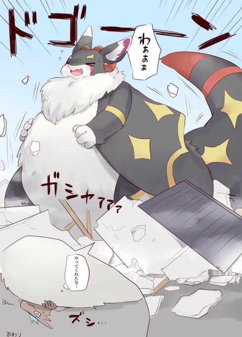 ドラコさんからの依頼でいちゅ(@wiz_schul_0219 )さん家のうぃずちゃむくむく漫画描きました(*˘︶˘*)! 可愛いうぃずちゃの部屋いっぱいに膨れたもっふもふむにむにのお腹に潰されたい…!!