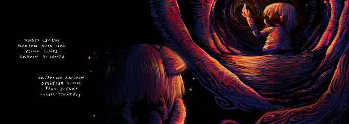 例大祭準新刊、「はいよるよるのやみ」ある夜、森に迷い込んだ少年が、1人でうずくまって泣くルーミアと出会い、一緒に出口を探します。やがて松明の火が消えると周りにはおぞましい化け物が…