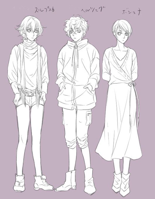 こないだから描き散らしてるあの辺の…追加。ホ゛シュナさんとヘノレツェグさんとスノレプスカさんとあとコソホ゛くん。あと一名で集合絵描けるかなあ…?