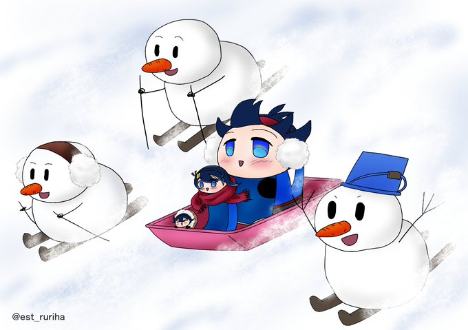 またしても大遅刻すみません💦💦 お題『雪だるま/そり遊び』 #もちねんすけちか版お絵描き120分