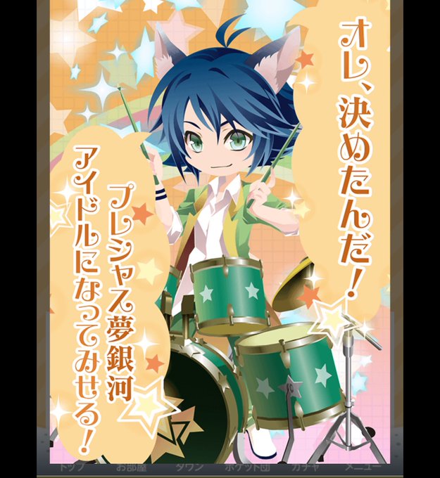 にぎやかな夏の海をイメージ パラソルを模したスカートは1周年の祝幕も兼ねて紅白に 暑いけどトレードマークのベレー帽はそのままがいいなー #ギア子の着せ替え