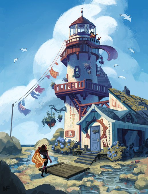 On a un véritable coup de ❤ pour les œuvres de Nathalie Fourdraine, alias @Loopyyylupe ! Concept artist & illustratrice, elle maîtrise Photoshop, Maya, 3DS Max, Substance Painter. Des visuels colorés, doux, ronds et pétillants ! https://t.co/un8K5oc8Lj #conceptart #illustration