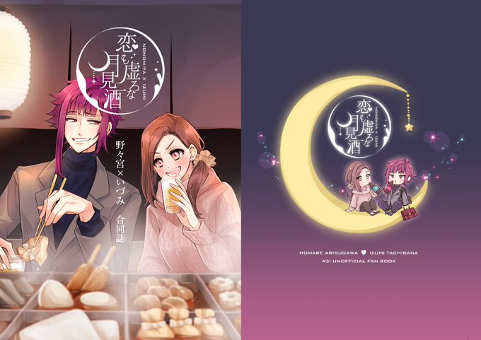 百尾さん(@Momoo_soon )と桜乃さん(@sakuno_A3 )の野々宮×いづみ合同誌「恋も虚ろな月見酒」の表紙を描かせて頂きました!