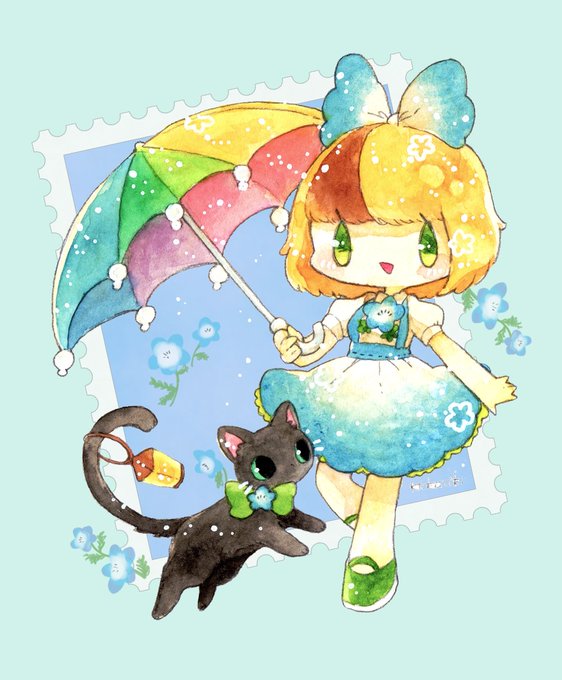 ミケcatさん @nyanko_mike313 のアンちゃんとランタンさんお借りしました! もうすぐ春なのでネモフィライメージのお洋服で……!💙