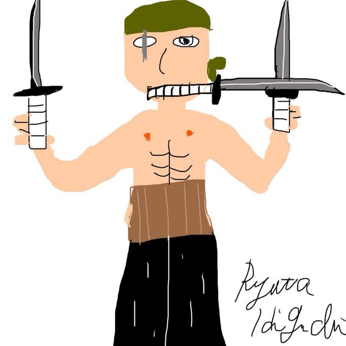 最近の画伯のお絵描き事情 ①カビゴン ②たぬき ③パグ ④ワンピース ゾロ