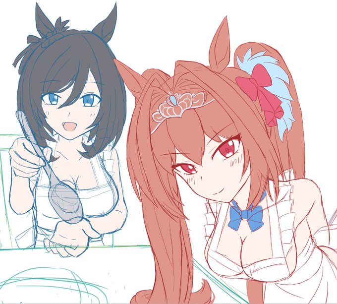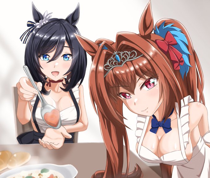 「あい、あーんしてください?」 「何鼻の下伸ばしてんのよ」 #エイシンフラッシュ #ダイワスカーレット