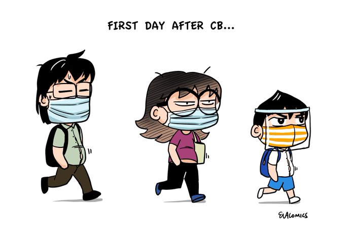 First day after CB/quarantine... I hope retailers can open soon so I can buy new clothes... Have a happy first day at school/work! ☀️