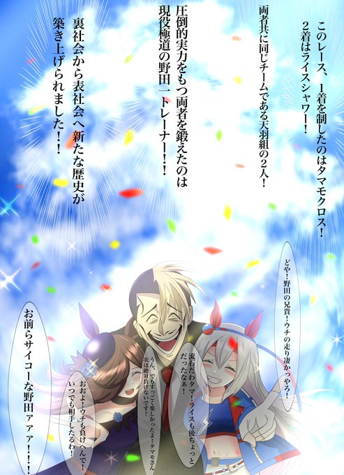 野田の兄貴 歴史をつくる #ウマ娘プリティーダービー #バグ大アート科 #野田一 #タマモクロス #ライスシャワー