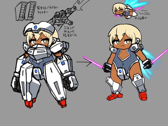 適当に考えたメカ少女できたよ。やっぱアーマーパージは浪漫 クソ遅超火力射撃娘からクソ速超火力格闘娘になるよ。