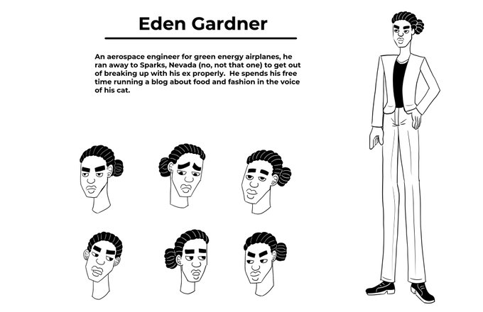 Eden, Rex's ex-boyfriend. He broke up with Rex for a job out of state and used the excuse that LDRs don't work, but really was too afraid of being in an intimate relationship. He reviewed Rex's food online (not knowing it was his ex), which kicks off the events of the story