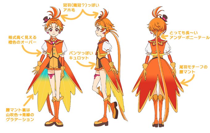 お次はキュアウィング。 詳細は未発表ですが、色だけ見ると「黄キュア」というより「橙キュア」といった方がいいのかな? 名前から見て鳥モチーフっぽいですね。 #precure #ひろプリ
