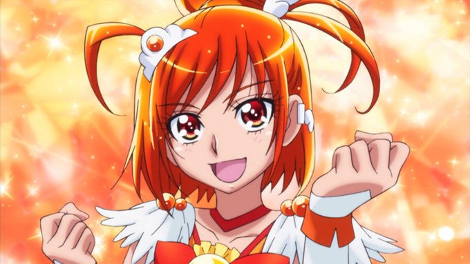 キュアウィングはショートヘアがキュアルージュ、色合いはキュアサニー、宝塚男役っぽい衣装はキュアショコラっぽくて、ボーイッシュな赤キュアや橙キュアの要素を色々混ぜた感じかな。 #precure #ひろプリ