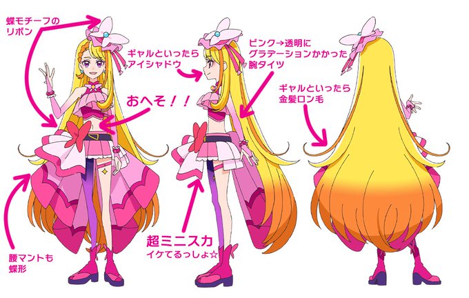 シリーズ初のギャルキュアということもあって、デザインにも今までになかった要素が多く取り入れられている感じですね。 変身前がどんな子なのか気になりますが、普段は寡黙だけど変身するとめっちゃアゲアゲになるキュアパパイアみたいだったらさらに人気出そうかも? #precure #ひろプリ