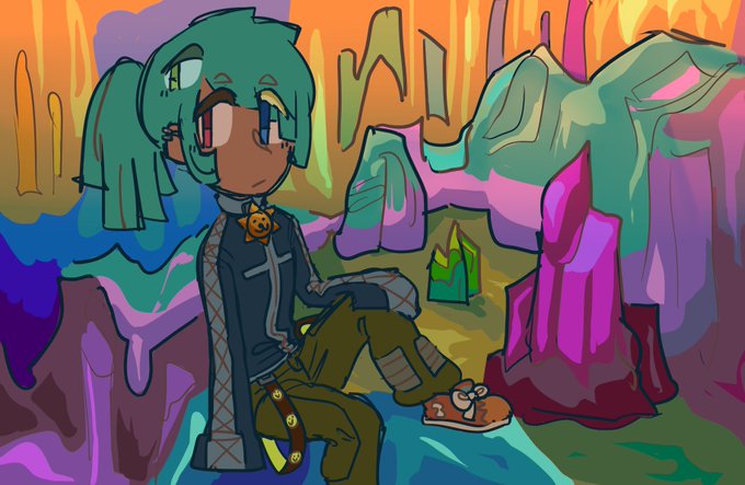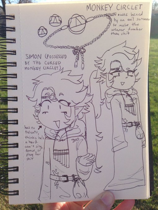this guy i designed in 2018 for rpg university but havent made a proper ref til now. his whole shtick is really funny he's an archaeologist and then he puts on this ancient monkey circlet which curses him and makes him dumb as rocks and no one can figure out it's the circlet
